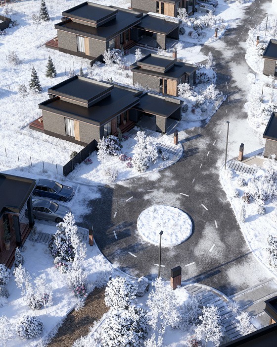 Коттеджный поселок Astoria Park разделен на 8 улиц. У каждой из них — свой архитектурный стиль домов.